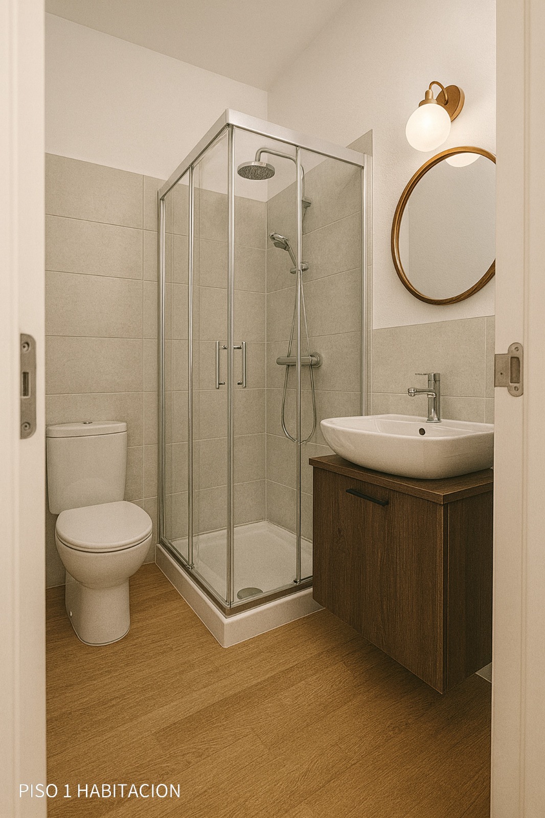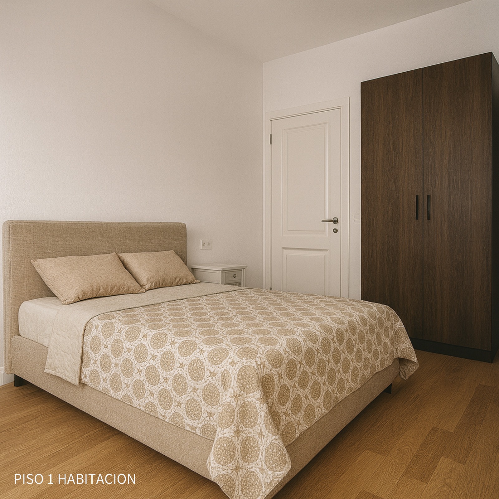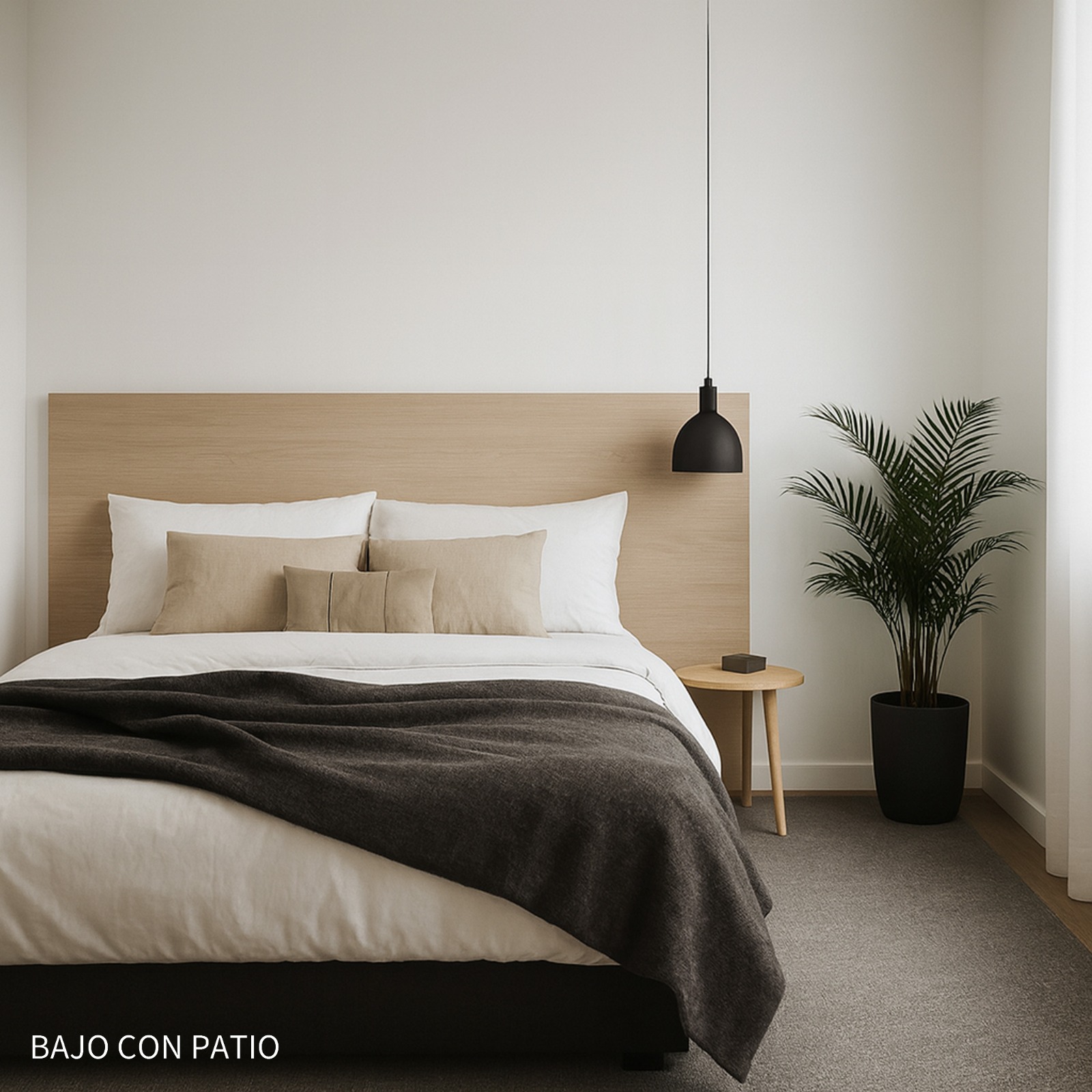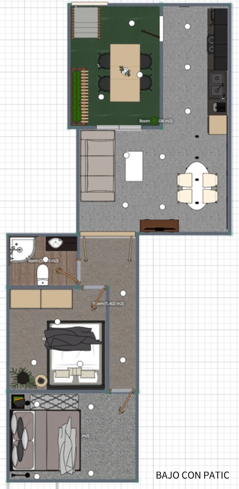 – Planta baja con patio, cocina-comedor, dos habitaciones y un baño.