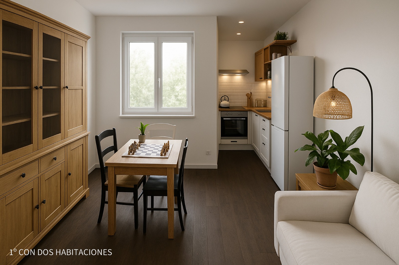 – Primera planta con dos habitaciones, cocina-comedor y un baño.